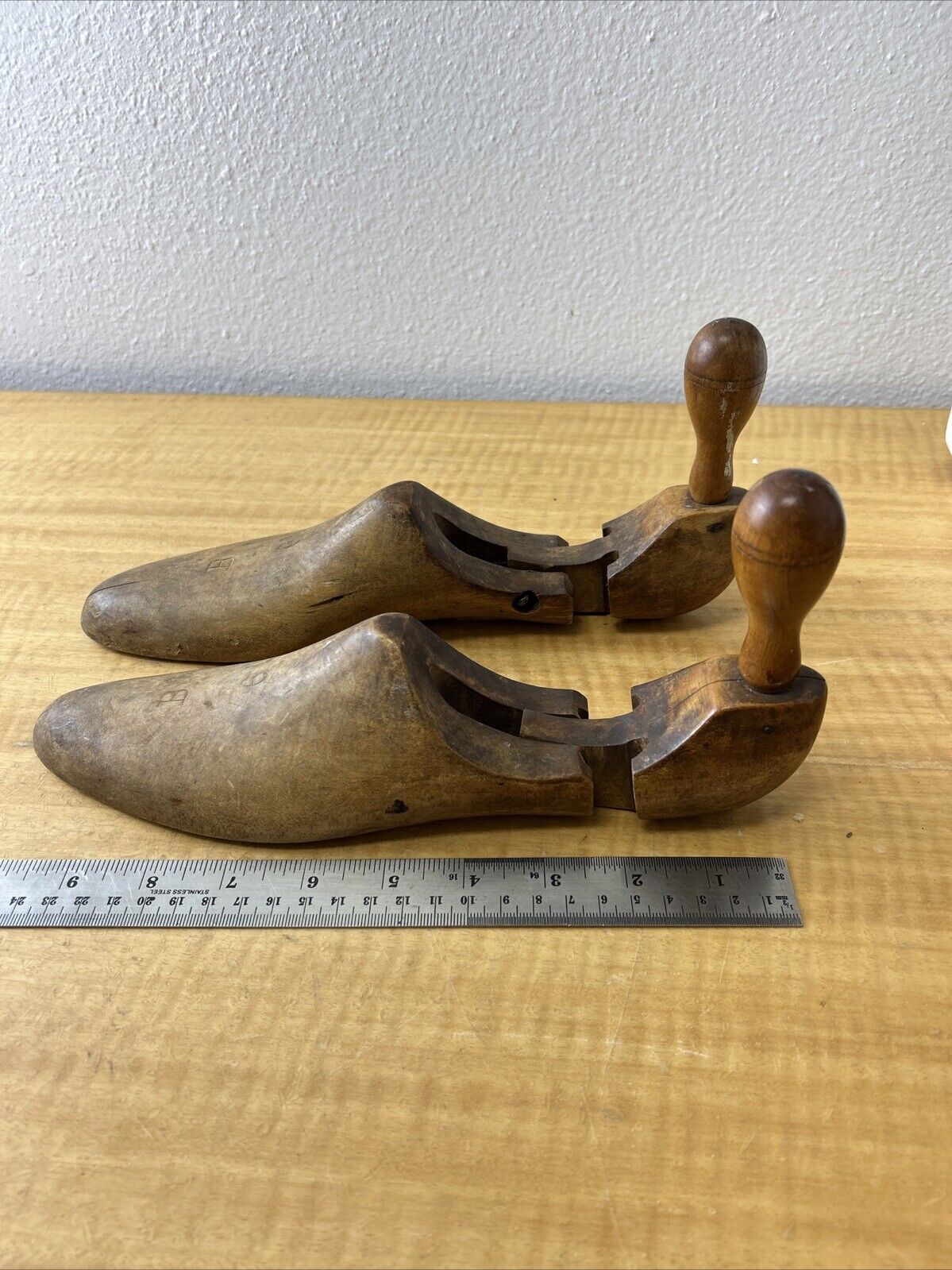 Condition Description: This item is second hand and shows signs of its age. There are some minor imperfections that add to its character. These wooden shoe stretchers have small cracks at the toe and heel.