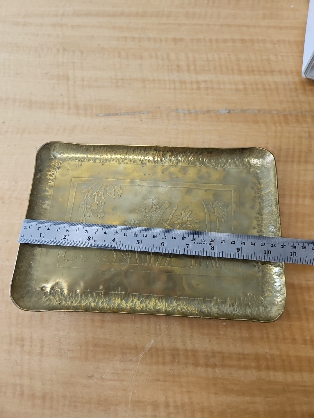 Vtg. Brass Serving Tray bird, flowers hammered 10 5/8″ x 7 1/4″