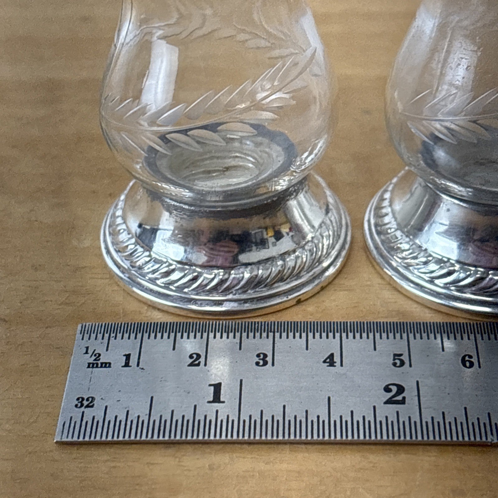 Vtg QUAKER SILVER Sterling Silver Hurricane #703 Etched Glass Salt Pepper Shaker