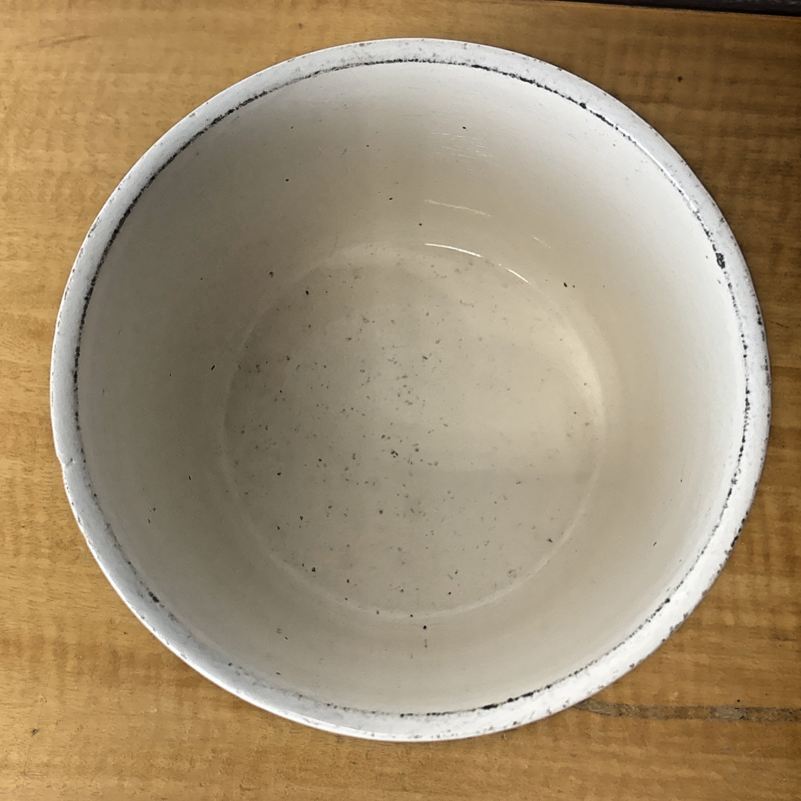 Condition Description: See images, ask questions. Chip on rim, scuffing, and missing lid as seen in photos.