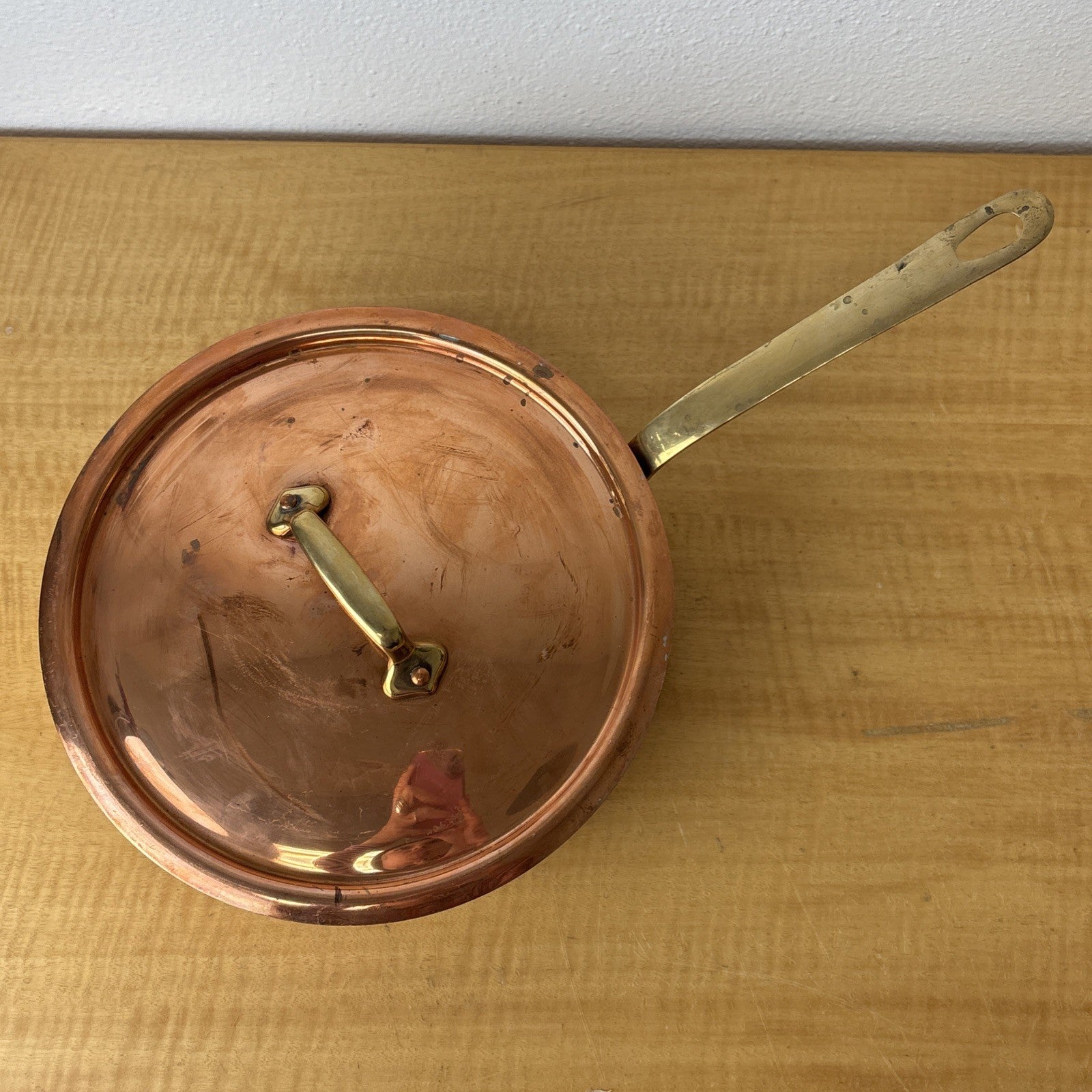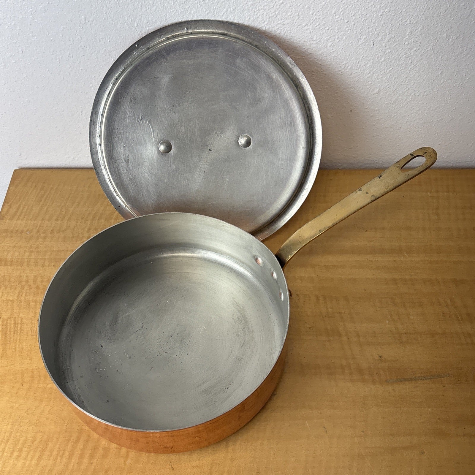 William Sonoma Vintage Copper 3 Qt 9.5″ x 3″ Deep Saute Skillet Pan Pot w Lid