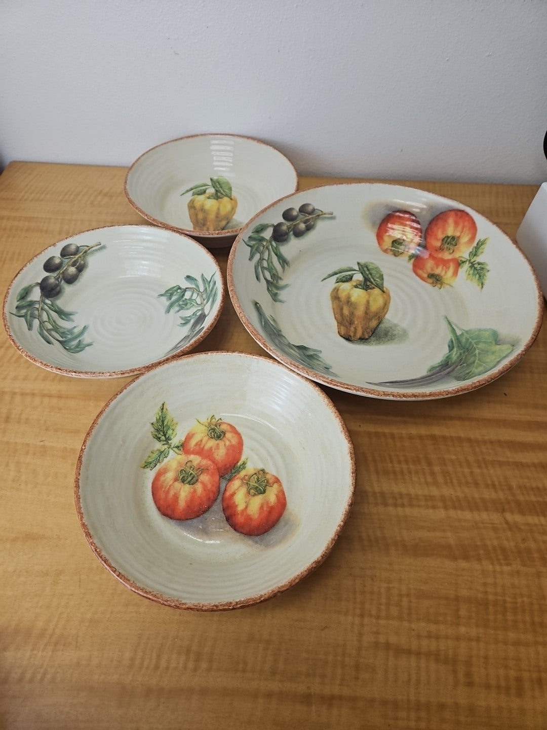 Condition Description: see photos, ask questions, large bowl has crazing, pepper bowl has tiny chip in lip, all edges are not smooth as produced