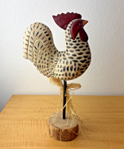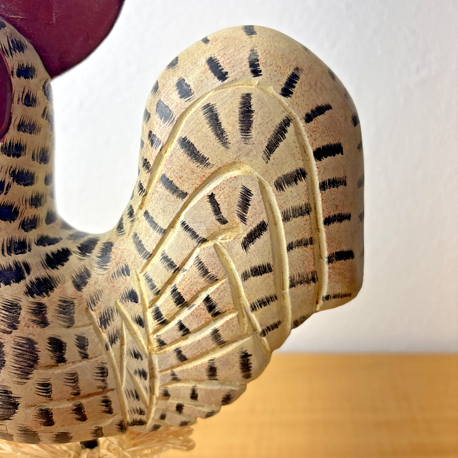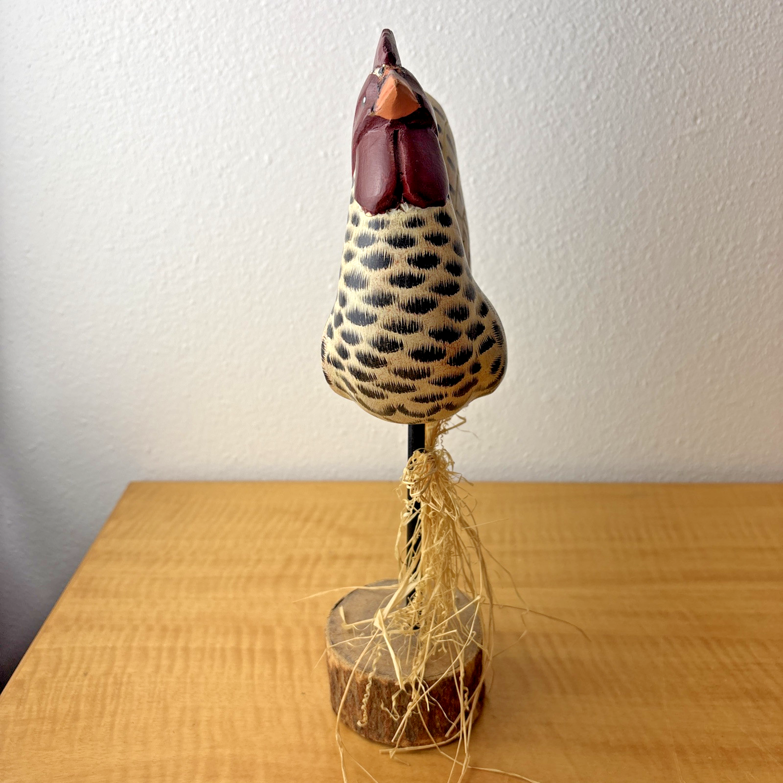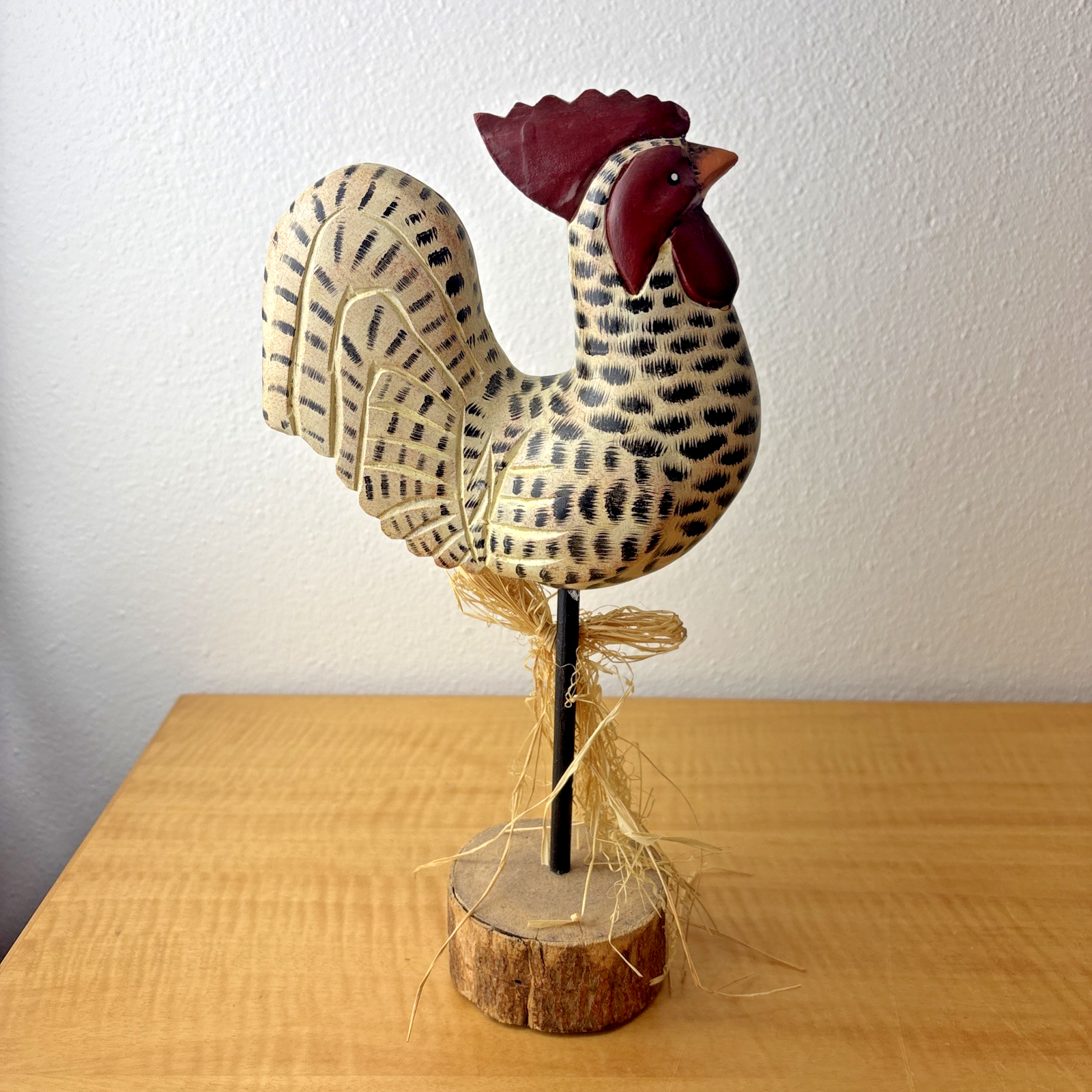 Wooden Hand Carved Painted Rooster Chicken Statue Figure Folk Art Decor