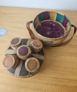 Woven sewing or spice Basket 5 Compartments in lid w/ carry strap African style