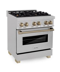 Luxury isn’t meant to be desired – it’s meant to be attainable. The ZLINE Autograph Edition 30 in. 4.0 cu. ft. Legacy Dual Fuel Range with 4 Burner Gas Cooktop and Electric Convection Oven in DuraSnow® Stainless Steel and Champagne Bronze Accents (RASZ-SN-30-CB) pairs a powerful gas cooktop with 4 Italian-crafted burners, an electric convection oven with a Landscape oven door window design, and elegant champagne bronze knobs and handle. With innovative features designed to enhance your kitchen’s capability, ZLINE Legacy Dual Fuel Ranges provide a professional culinary experience by pairing unmatched performance with timeless style.