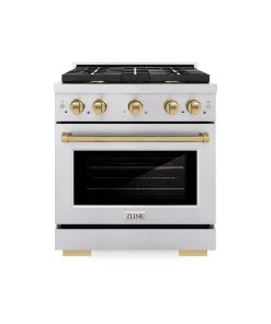 Luxury isn’t meant to be desired – it’s meant to be attainable. The ZLINE Autograph Edition 30 in. 4.2 cu. ft. Paramount Dual Fuel Range with 4 Burner Gas Cooktop and Electric Convection Oven in Stainless Steel with Champagne Bronze Accents (SDRZ-30-CB) combines the versatility of a gas cooktop with 4 Italian-made auto-reignition burners, an electric convection oven with digital thermostat technology, enhanced cast iron grates, a Horizon oven door window design, and elegant champagne bronze knobs and handle allowing you to master every meal. With a modern, timeless style and refined functionality, ZLINE Paramount Dual Fuel Ranges are masterfully crafted to deliver an elevated culinary experience.