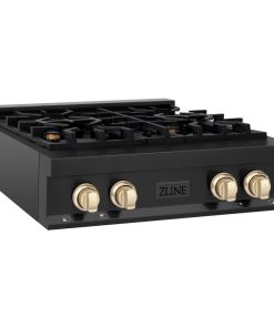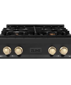 ZLINE Autograph Edition 30 in. Legacy Gas Rangetop with 4 Burners and Porcelain Cooktop in Black Stainless Steel with Polished Gold Accents (RTBZ-30-G)