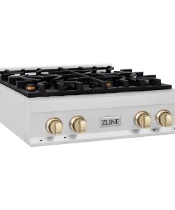 ZLINE Autograph Edition 30 in. Legacy Gas Rangetop with 4 Burners and Porcelain Cooktop in DuraSnow Stainless Steel with Polished Gold Accents (RTSZ-30-G)