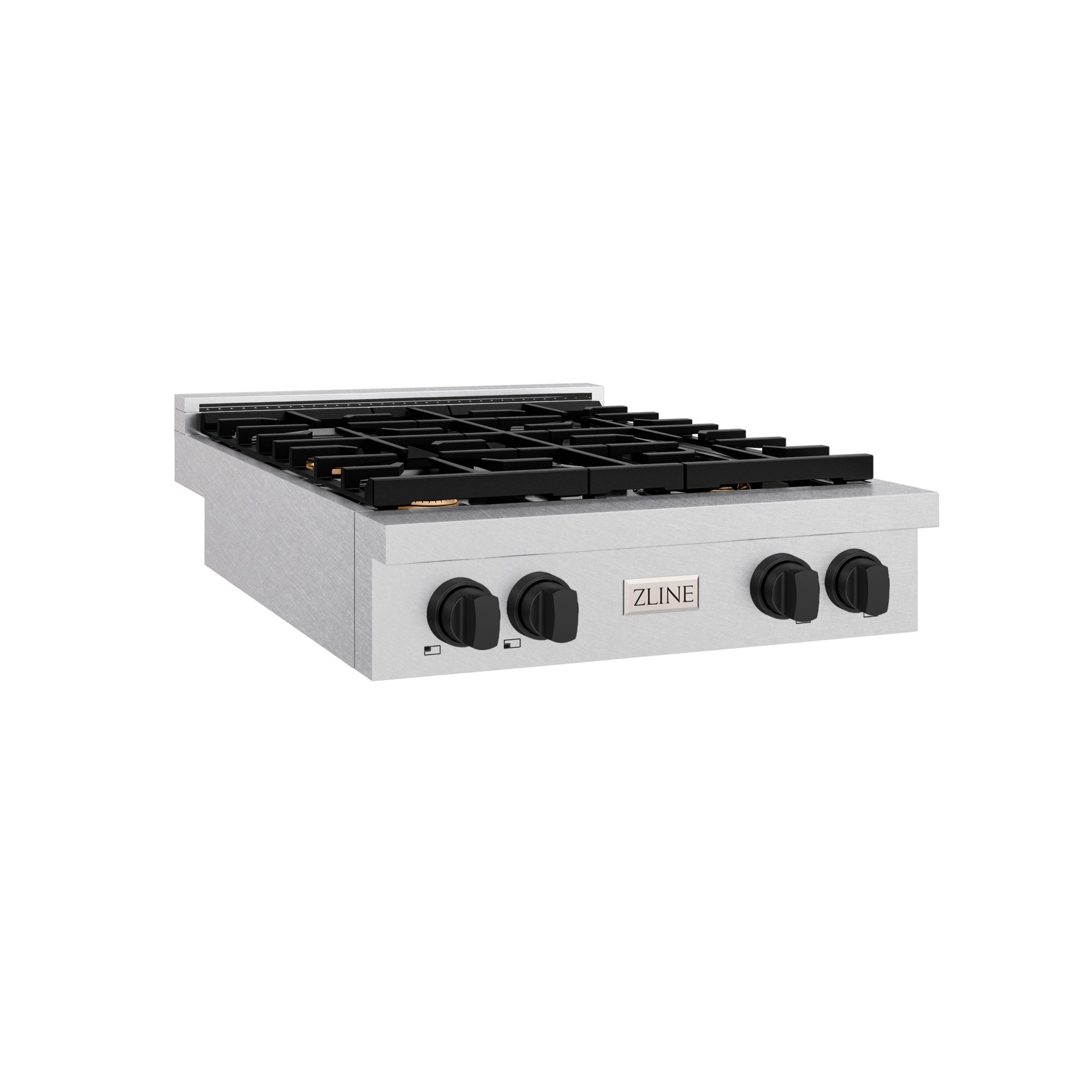 ZLINE Autograph Edition 30 in. Paramount Gas Rangetop with 4 Burners and Porcelain Cooktop in DuraSnow Stainless Steel with Matte Black Accents (SRTSZ-30-MB)