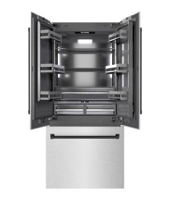 Luxury isn’t meant to be desired – it’s meant to be attainable. The ZLINE Autograph Edition 36 in. 19.6 cu. ft. French Door Built-In Bottom Freezer Refrigerator with Water Dispenser and Ice Maker in DuraSnow® Stainless Steel with Graphite Gray Interior and Matte Black Accents (GRBIVZ-SN-36-MB) provides the ultimate upgrade to the center of your home by pairing premium dual cooling technology with enhanced storage capacity for multiple grocery items. Achieve ZLINE Attainable Luxury® excellence with innovative features designed to enhance your kitchen’s cooling and freezing capability.