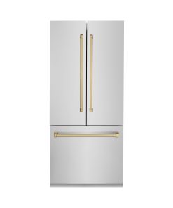 Luxury isn’t meant to be desired – it’s meant to be attainable. The ZLINE Autograph Edition 36 in. 19.6 cu. ft. French Door Built-In Bottom Freezer Refrigerator with Water Dispenser and Ice Maker in Stainless Steel with Champagne Bronze Accents (RBIVZ-304-36-CB) provides the ultimate upgrade to the center of your home by pairing premium dual cooling technology with enhanced storage capacity for multiple grocery items. Achieve ZLINE Attainable Luxury® excellence with innovative features designed to enhance your kitchen’s cooling and freezing capability.