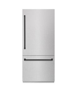 ZLINE Autograph Edition 36 in. 19.8 cu. ft. Built-In Bottom Freezer Refrigerator with Water Dispenser and Ice Maker in DuraSnow Stainless Steel and Matte Black Accents (RBITZ-SN-36-MB)