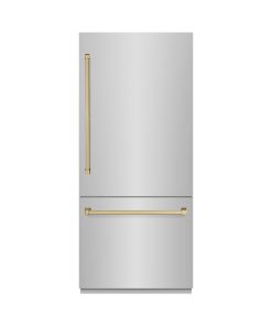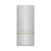 ZLINE Autograph Edition 36 in. 19.8 cu. ft. Built-In Bottom Freezer Refrigerator with Water Dispenser and Ice Maker in Stainless Steel with Champagne Bronze Accents (RBITZ-304-36CB)
