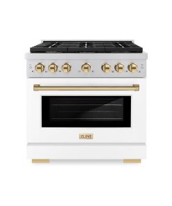 Luxury isn’t meant to be desired – it’s meant to be attainable. The ZLINE Autograph Edition 36 in. 5.2 cu. ft. Paramount Dual Fuel Range with 6 Burner Gas Cooktop and Electric Convection Oven in Stainless Steel with White Matte Door and Polished Gold Accents (SDRZ-WM-36-G) combines the versatility of a gas cooktop with 6 Italian-made auto-reignition burners, an electric convection oven with digital thermostat technology, enhanced cast iron grates, a beautiful white matte door with a Horizon window design, and elegant polished gold knobs and handle allowing you to master every meal. With a modern, timeless style and refined functionality, ZLINE Paramount Dual Fuel Ranges are masterfully crafted to deliver an elevated culinary experience.