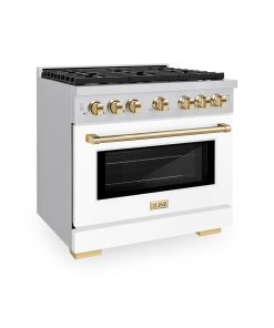 Luxury isn’t meant to be desired – it’s meant to be attainable. The ZLINE Autograph Edition 36 in. 5.2 cu. ft. Paramount Dual Fuel Range with 6 Burner Gas Cooktop and Electric Convection Oven in Stainless Steel with White Matte Door and Polished Gold Accents (SDRZ-WM-36-G) combines the versatility of a gas cooktop with 6 Italian-made auto-reignition burners, an electric convection oven with digital thermostat technology, enhanced cast iron grates, a beautiful white matte door with a Horizon window design, and elegant polished gold knobs and handle allowing you to master every meal. With a modern, timeless style and refined functionality, ZLINE Paramount Dual Fuel Ranges are masterfully crafted to deliver an elevated culinary experience.