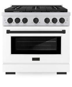 Luxury isn’t meant to be desired – it’s meant to be attainable. The ZLINE Autograph Edition 36 in. 5.2 cu. ft. Paramount Gas Range with 6 Burner Cooktop and Convection Gas Oven in Stainless Steel with White Matte Door and Matte Black Accents (SGRZ-WM-36-MB) features a versatile gas cooktop with 6 Italian-made auto-reignition burners, a high-performing gas convection oven, enhanced cast iron grates, a beautiful white matte door with a Horizon window design, and elegant matte black knobs and handle allowing you to master every meal. With a modern, timeless style and refined functionality, ZLINE Paramount Gas Ranges are masterfully crafted to deliver an elevated culinary experience.