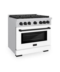 ZLINE Autograph Edition 36 in. 5.2 cu. ft. Paramount Gas Range with 6 Burner Cooktop and Convection Gas Oven in Stainless Steel with White Matte Door and Matte Black Accents (SGRZ-WM-36-MB)