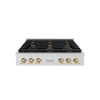 ZLINE Autograph Edition 36 in. Paramount Gas Rangetop with 6 Burners and Porcelain Cooktop in DuraSnow Stainless Steel with Polished Gold Accents (SRTSZ-36-G)