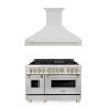 ZLINE Autograph Edition 48 in. Kitchen Package with Stainless Steel Dual Fuel Range and Range Hood with Champagne Bronze Accents (2AKP-RARH48-CB)