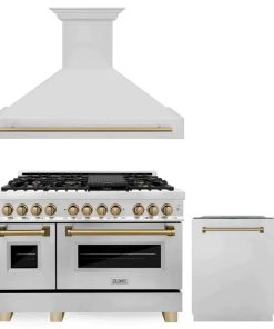 ZLINE Autograph Edition 48 in. Kitchen Package with Stainless Steel Dual Fuel Range, Range Hood and Dishwasher with Champagne Bronze Accents (3AKP-RARHDWM48-CB)
