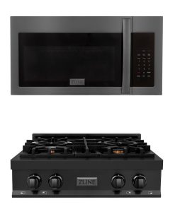 ZLINE Kitchen Package with 30 in. Black Stainless Steel Rangetop and 30 in. Over The Range Microwave with Modern Handle (2KP-RTBOTR30)