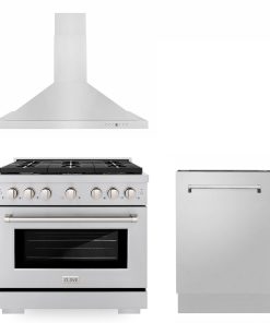 ZLINE Kitchen Package with 30 in. DuraSnow Stainless Steel Rangetop, 30 in. Over The Range Microwave with Modern Handle and Double Wall Oven (3KP-RTSOTR30-AWD)