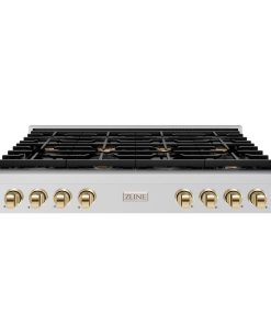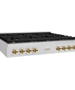 ZLINE Autograph Edition 48 in. Legacy Gas Rangetop with 7 Burners and Porcelain Cooktop in Stainless Steel with Polished Gold Accents (RTZ-48-G)