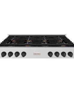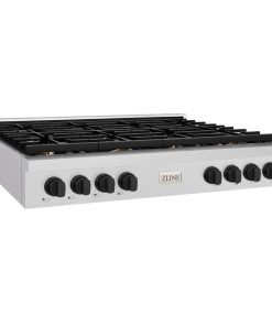 ZLINE Autograph Edition 48 in. Paramount Gas Rangetop with 8 Burners and Porcelain Cooktop in Stainless Steel with Matte Black Accents (SRTZ-48-MB)
