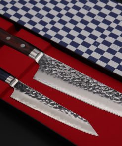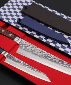 JCK Natures Golden Clouds & Blue Clouds Series AUS-10 Tsuchime Hammered Kiritsuke Petty & Bunka (Kiritsuke) (BCGC-2Pcs Knife Set)