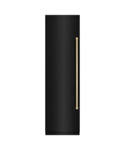 ZLINE Autograph Edition 24 in. 12.4 cu. ft. Column Freezer in Black Stainless Steel with Graphite Gray Interior and Polished Gold Accents (RCFVZ-BS-24-G)