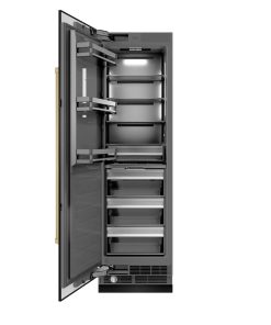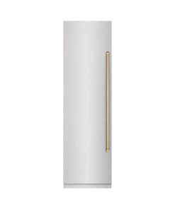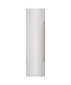 ZLINE Autograph Edition 24 in. 12.4 cu. ft. Column Freezer in DuraSnow Stainless Steel with Graphite Gray Interior and Polished Gold Accents (RCFVZ-SN-24-G)