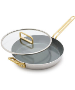 Stanley Tucci™ Stainless Steel Ceramic Nonstick 12″ Frypan with Lid | Champagne Handle