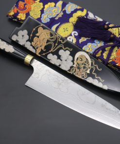 Takeshi Saji Urushi & Makie Series “風神(God of Wind) and 雷神(God of Thunder) Motif” R-2 Custom Damascus STU-39 Gyuto 240mm (9.4 Inch)