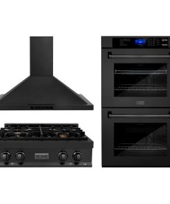 ZLINE Kitchen Package with 30 in. Black Stainless Steel Rangetop, 30 in. Convertible Range Hood and Double Wall Oven (3KP-RTBRH30-AWD)