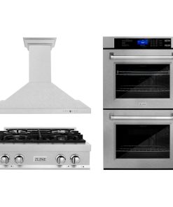 ZLINE Kitchen Package with 30 in. DuraSnow Stainless Steel Rangetop, 30 in. Convertible Range Hood and Double Wall Oven (3KP-RTSRH30-AWD)
