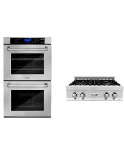 ZLINE Kitchen Package with 30 in. Stainless Steel Rangetop and 30 in. Double Wall Oven (2KP-RTAWD30)