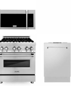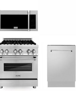 ZLINE 30 in. Kitchen Package with Stainless Steel Dual Fuel Range, Traditional Over The Range Microwave and Dishwasher (3KP-RAOTRH30-DW)
