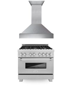 ZLINE 36 in. Kitchen Package with DuraSnow Stainless Steel Dual Fuel Range and Convertible Vent Range Hood (2KP-RASSNRH36)