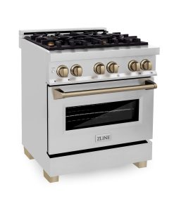 ZLINE Autograph Edition 30 in. Kitchen Package with Stainless Steel Dual Fuel Range and Range Hood with Champagne Bronze Accents (2AKP-RARH30-CB)