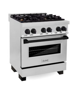 ZLINE Autograph Edition 30 in. Kitchen Package with Stainless Steel Dual Fuel Range and Range Hood with Matte Black Accents (2AKP-RARH30-MB)