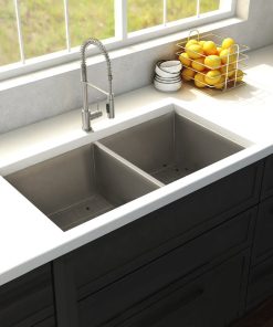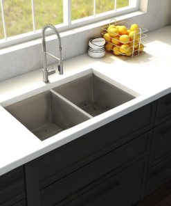 ZLINE Anton 33 in. Undermount Double Bowl Scratch Resistant Stainless Steel Kitchen Sink with Bottom Grid (SR50D-33S)