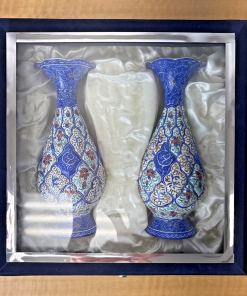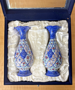 Persian Mina Kari Painted Handmade Fine Art Vase Set of 2 in Box