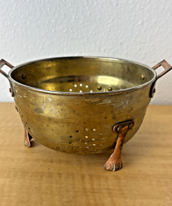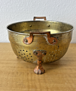 Vintage Three Footed Two Handled Metal ( Copper & Brass ? ) Colander Pot