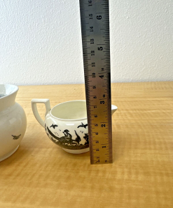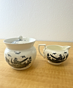 Wedgwood Liverpool Bird Black Transferware 3 Piece Sugar & Creamer RARE