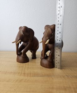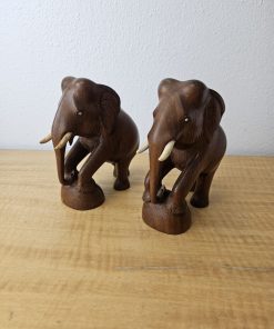 Wooden Elephant Pair w/Tusks Hand Carved 6″ tall, 1 lbs each
