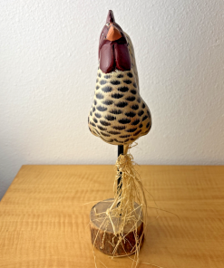 Wooden Hand Carved Painted Rooster Chicken Statue Figure Folk Art Decor