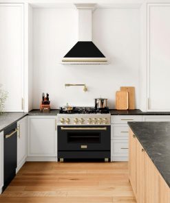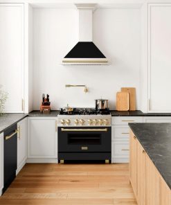 ZLINE Autograph Edition Convertible Stainless Steel Range Hood with Black Matte Shell and Polished Gold Handle (KB4STZ-BLM-G)