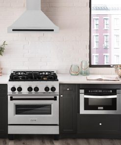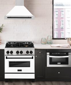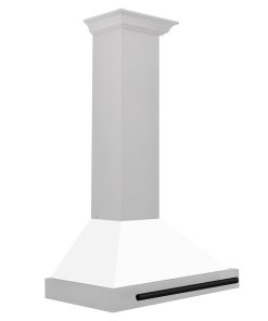 ZLINE Autograph Edition Convertible Fingerprint Resistant DuraSnow Stainless Steel Range Hood with White Matte Shell and Matte Black Handle (KB4SNZ-WM-MB)