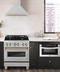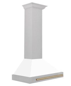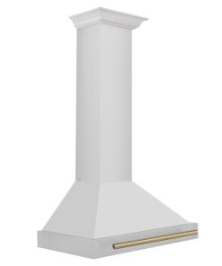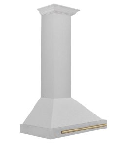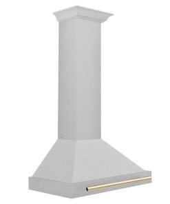 ZLINE Autograph Edition Convertible Fingerprint Resistant DuraSnow Stainless Steel Range Hood with Polished Gold Handle (KB4SNZ-G)