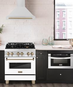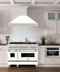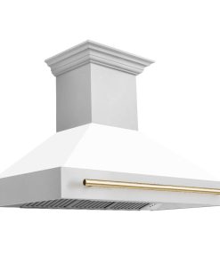 ZLINE Autograph Edition Convertible Fingerprint Resistant DuraSnow Stainless Steel Range Hood with White Matte Shell and Polished Gold Handle (KB4SNZ-WM-G)